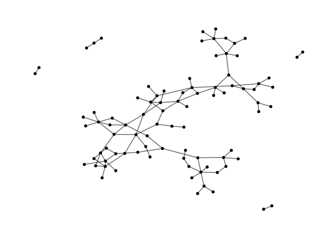 And we can compute common statistics from igraph as well. Here we confirm that clustering by “edge betweeness” gives us the expected number of modules: