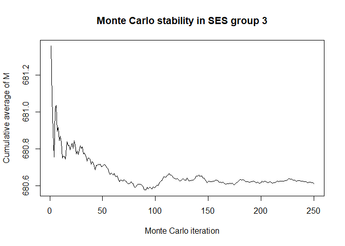 # approximation of the mean of M over the Monte Carlo iterations for SES group 1: