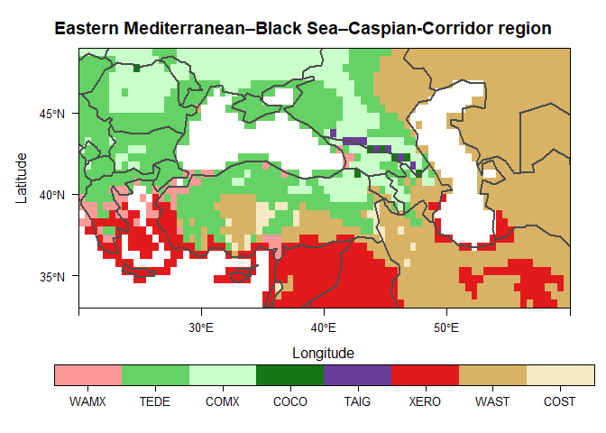 Create a biome map of the Eastern Mediterranean–Black Sea–Caspian-Corridor region for the period 1991-2020 using the CRU TS v.4.05 dataset (Harris et al. 2020)