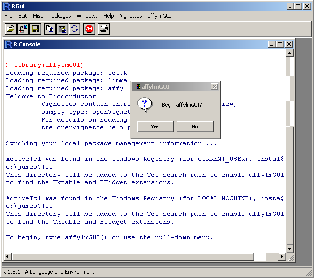 To use affylmGUI you will need R 1.8.0 or later, and at least the default packages