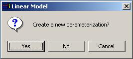 If, on the other hand, a parameterization had already been created, then you would have to choose whether to choose an existing parameterization for the linear model fit or whether to create a new one, i.e. you would get a Yes/No message box like this: