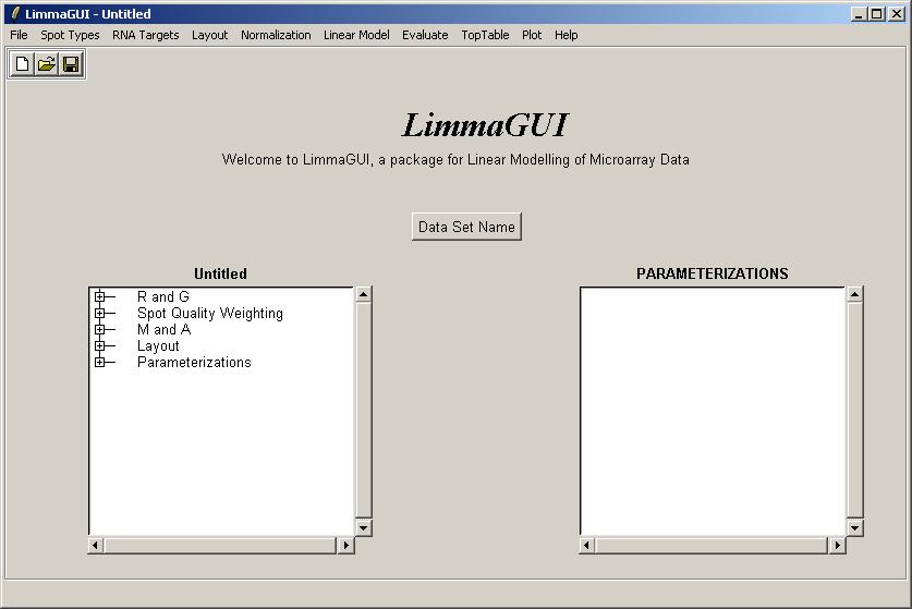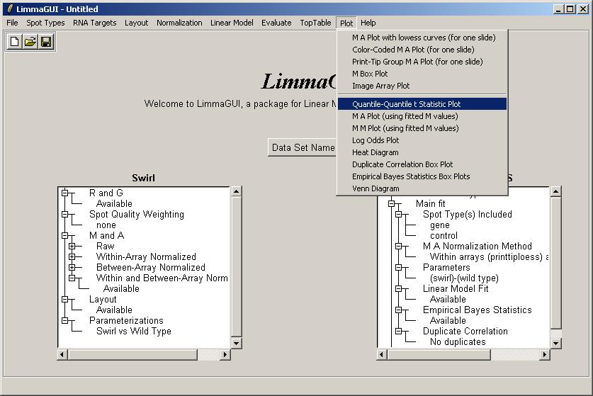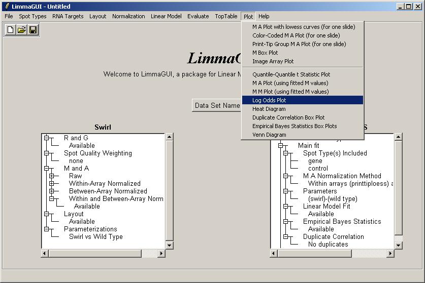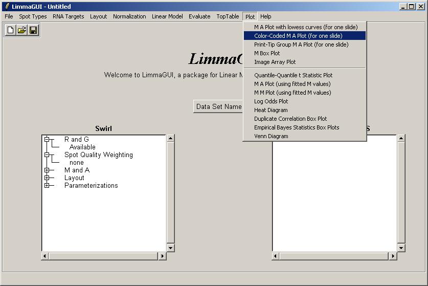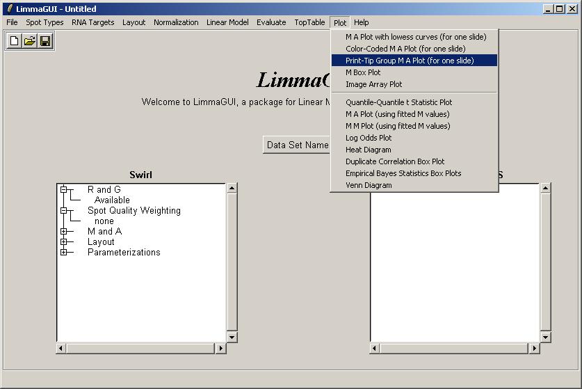 The limmaGUI main window is shown below.