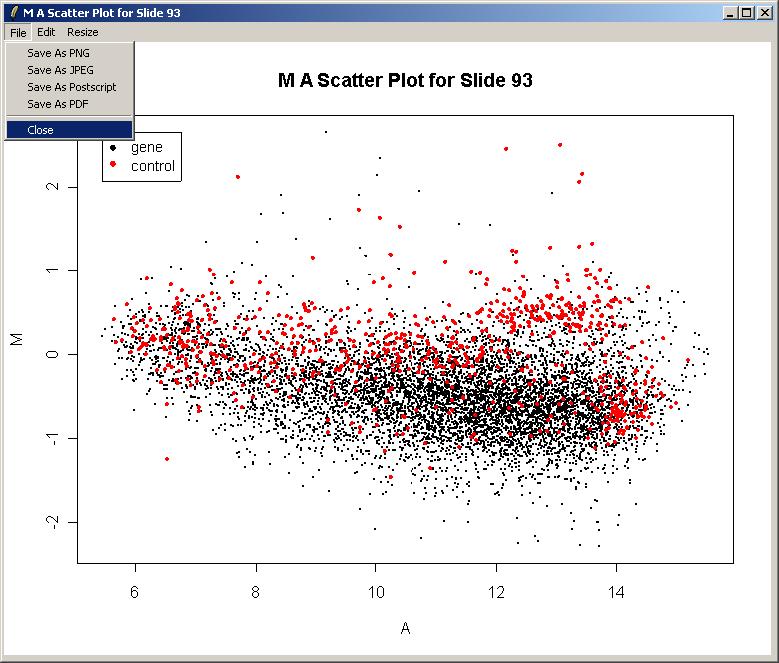 Now from the Plot menu, click on "M A Plot (using fitted M values)".