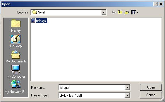 Clicking on the "Select GAL File" button gives the following dialog. Open "fish.gal".