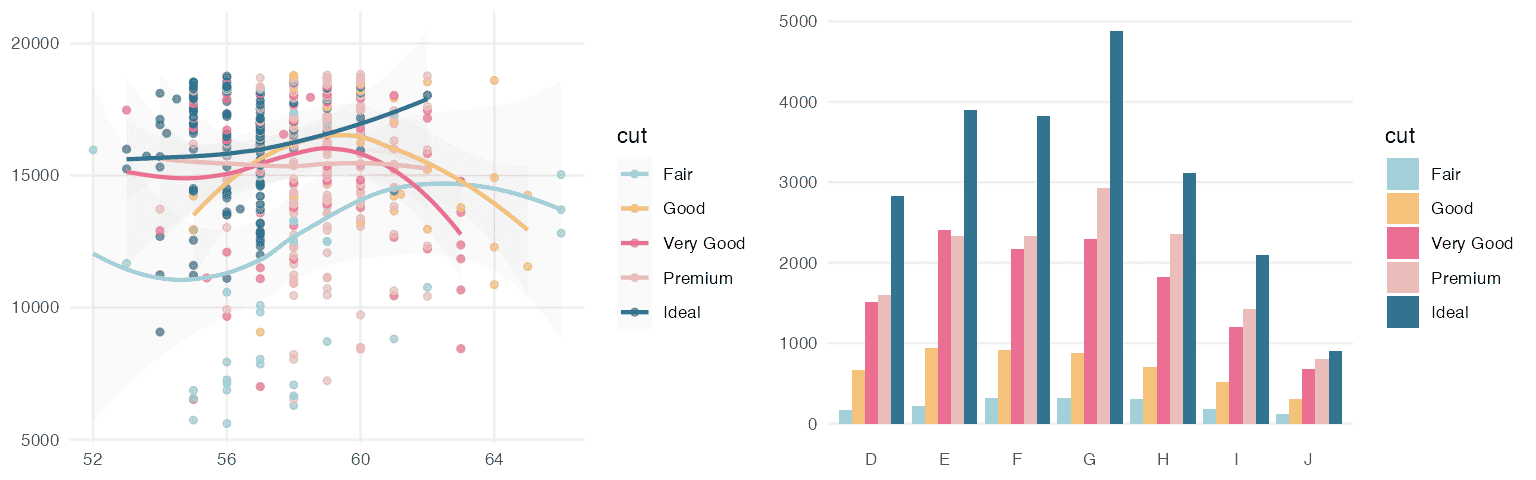 ggsci offers a collection of ggplot2 color palettes inspired by scientific journals, data visualization libraries, science fiction movies, and TV shows.