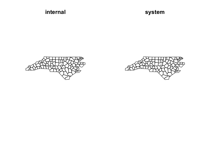 nc_simp_sys <- ms_simplify(nc_sf, sys = TRUE, sys_mem=8) #sys_mem specifies the amount of memory to use in Gb. It defaults to 8 if omitted.