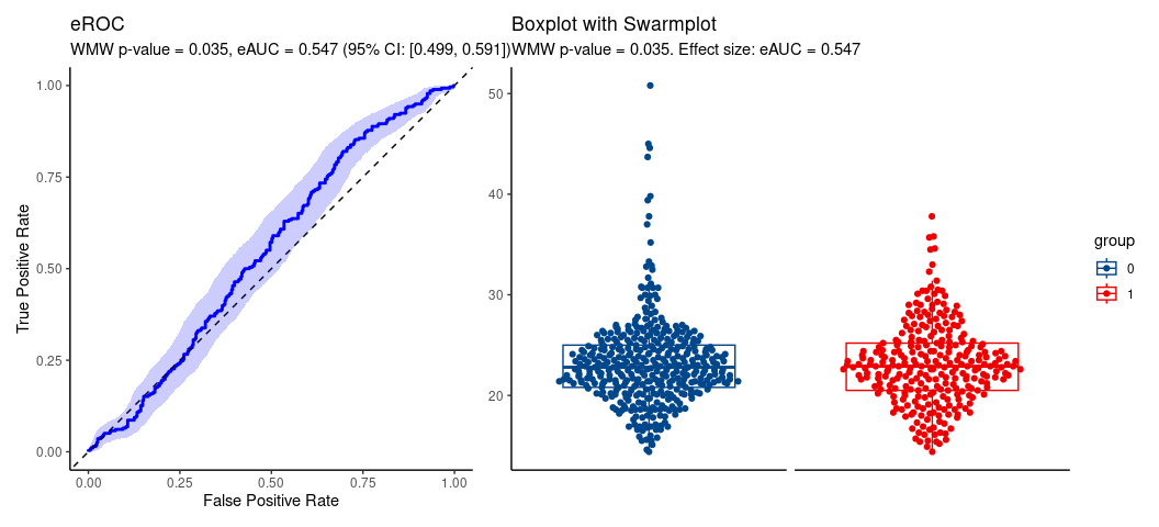 #> U = 59417.5, eAUC = 0.547, p-value = 0.035168, method = EU