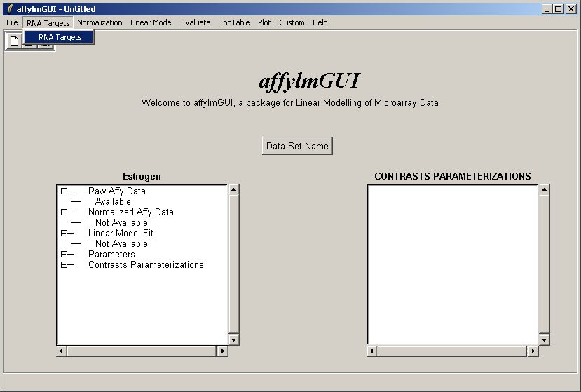 The RNA Targets can be viewed after having been loaded into affylmGUI using the "RNA Targets" menu.