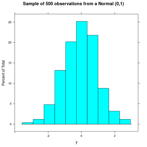 pic2<-histogram(y, main="Sample of 500 observations from a Normal (0,1)")