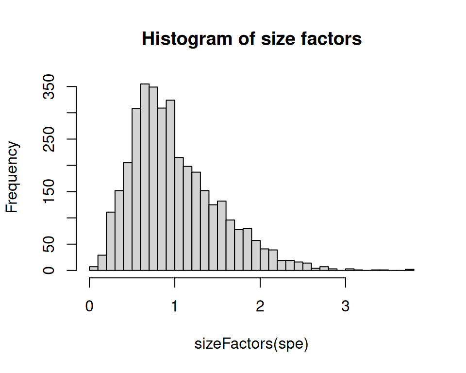 summary(sizeFactors(spe))## Min. 1st Qu. Median Mean 3rd Qu. Max.
