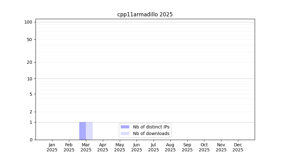 Number of downloads for annotation package cpp11armadillo, year by year, from 2025 back to 2014 (years with no downloads are omitted):
