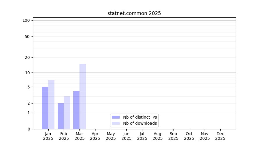 Number of downloads for annotation package statnet.common, year by year, from 2025 back to 2014 (years with no downloads are omitted):